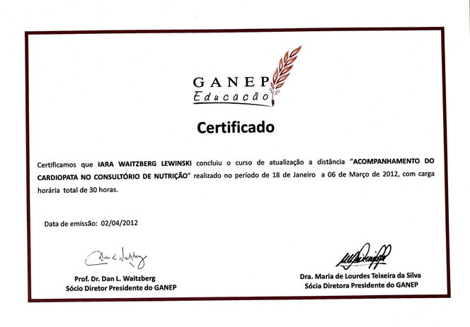 Nutrição Esportiva pelo Ganep Nutrição Humana (2014 - 2015);